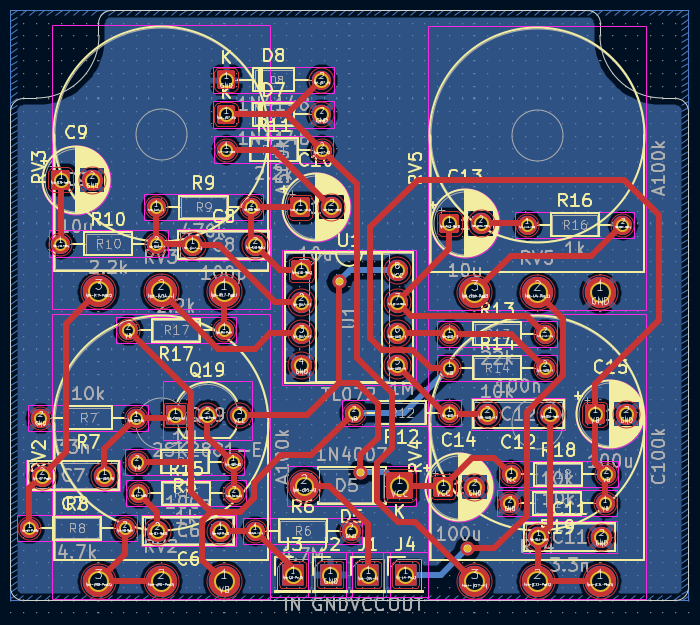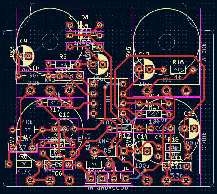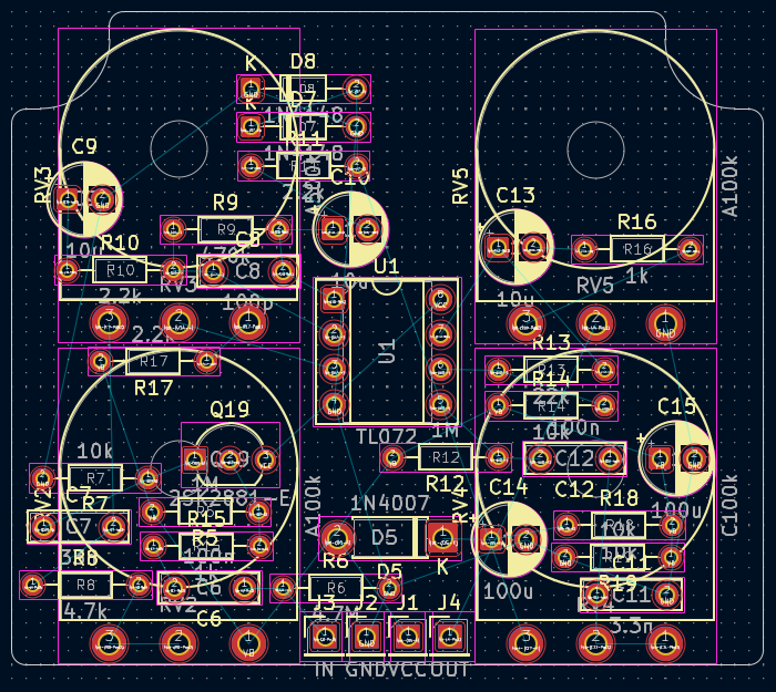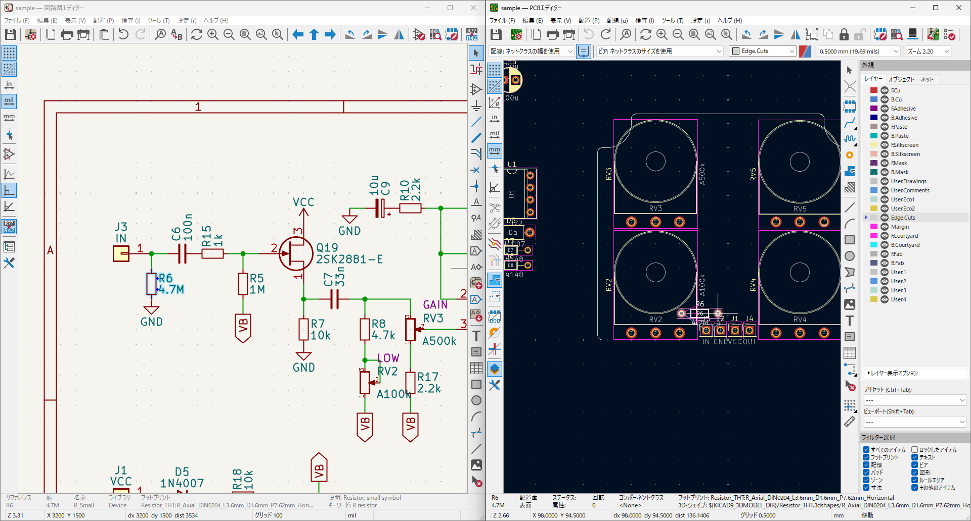 KiCadは無料で使える基板設計ソフトです。スルーホール部品を使ったアナログエフェクターの基板を設計するときのKiCadの使い方や、気を付けていること等をまとめます。