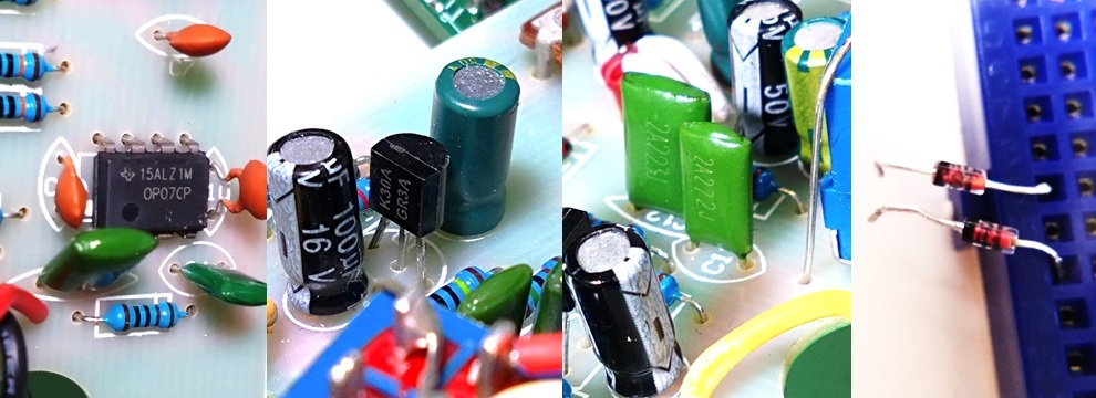 LM308は現在生産されておらず、入手困難です。信頼できる電子部品店で売られているもの以外は偽物と考えてよいでしょう。 LM108(LM308の高信頼品)は、在庫限りですがRochester Electronicsにあります。 Analog DevicesのLM108Aは1個52ドルで、現実的な価格ではありません。 今回は、Guyatone PS-031とPS-032から取り外したLM308N、ProCo BRATから取り外したLM308AN、トランスミット・サウンズで購入したLM308AHを準備しました。