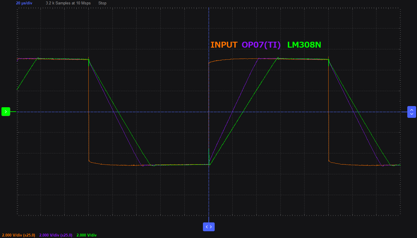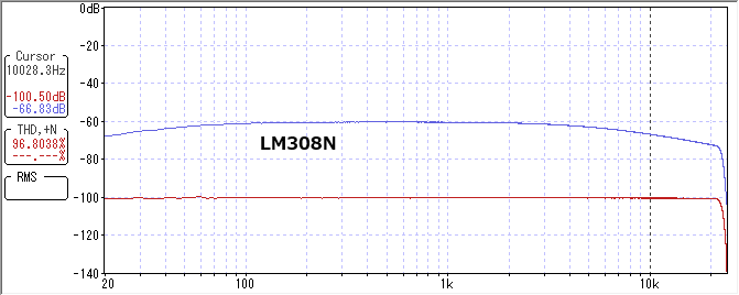 SRが低いため、高音域が下がり歪んでいます。LM308Nの方が影響が大きいようです。